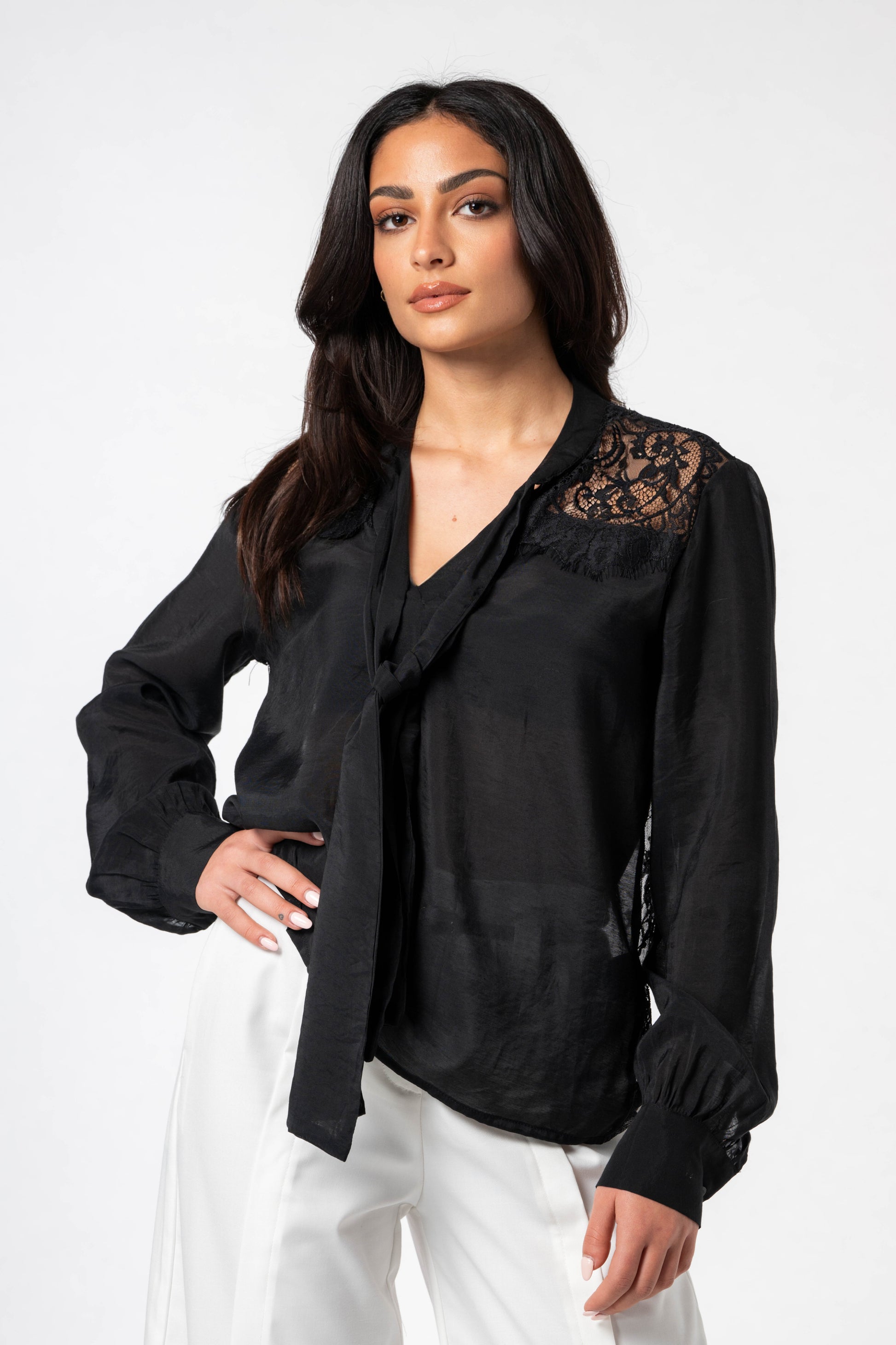YOU DECIDE Camicia In Mussola Pizzo Nera