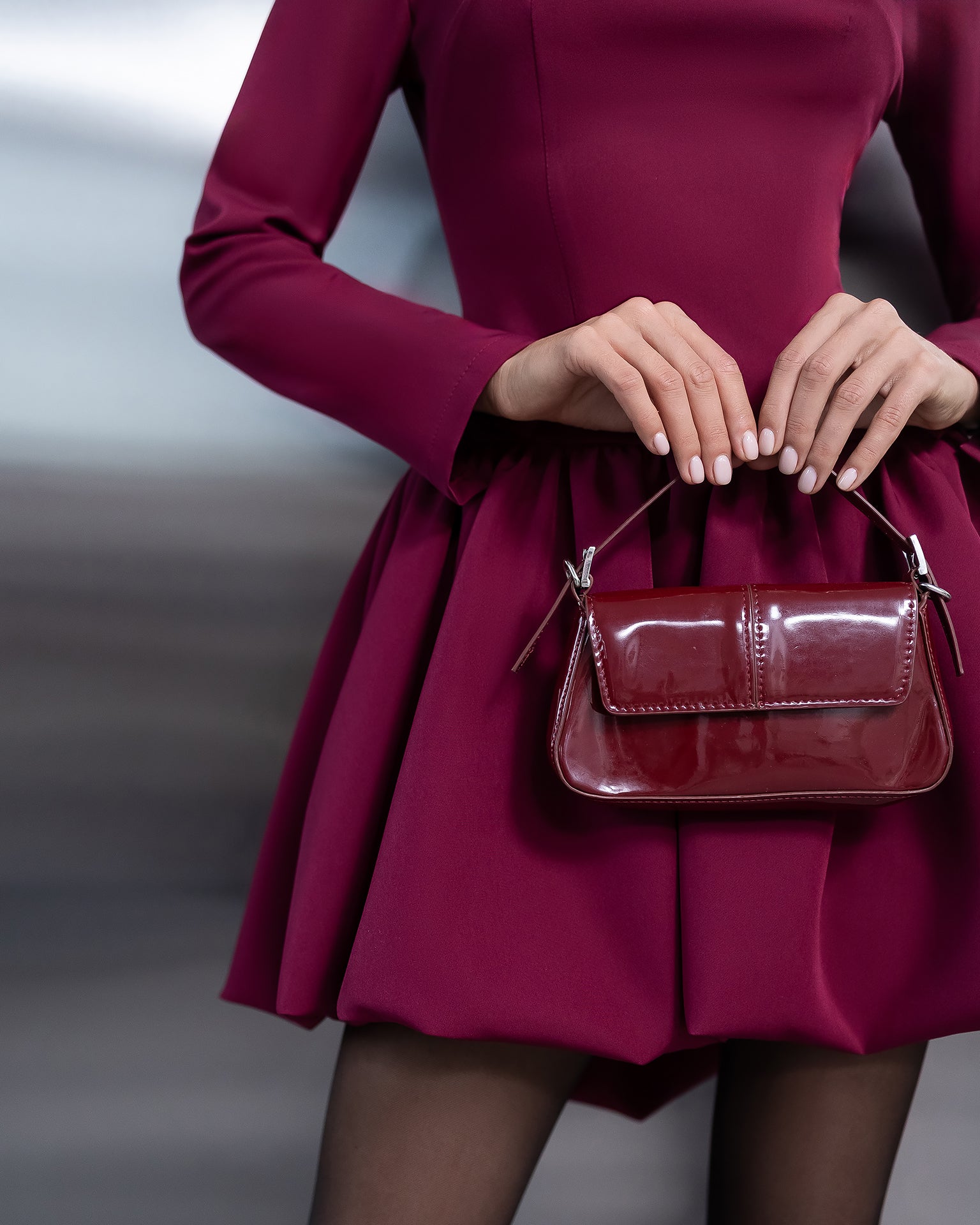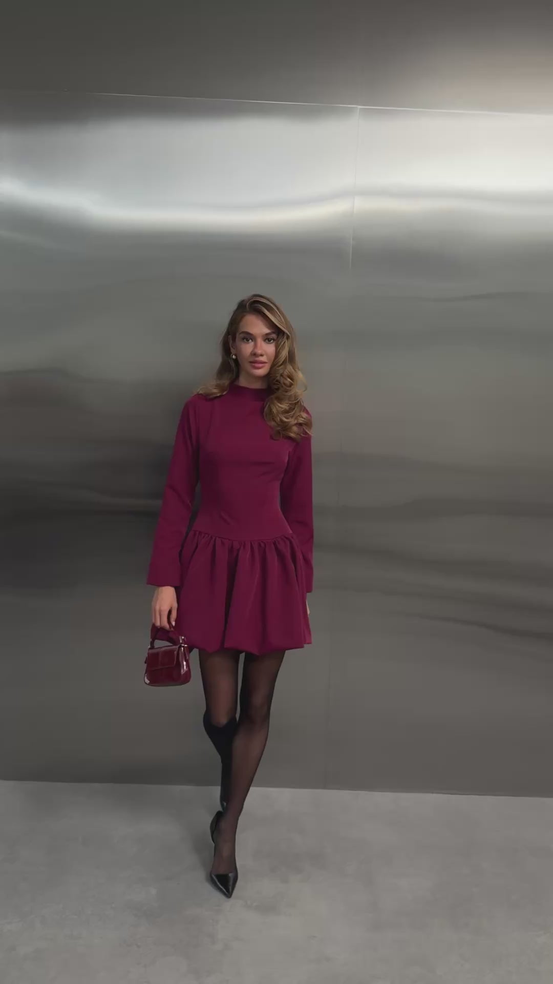 BE SURE – Abito palloncino bordeaux vinaccia a collo alto