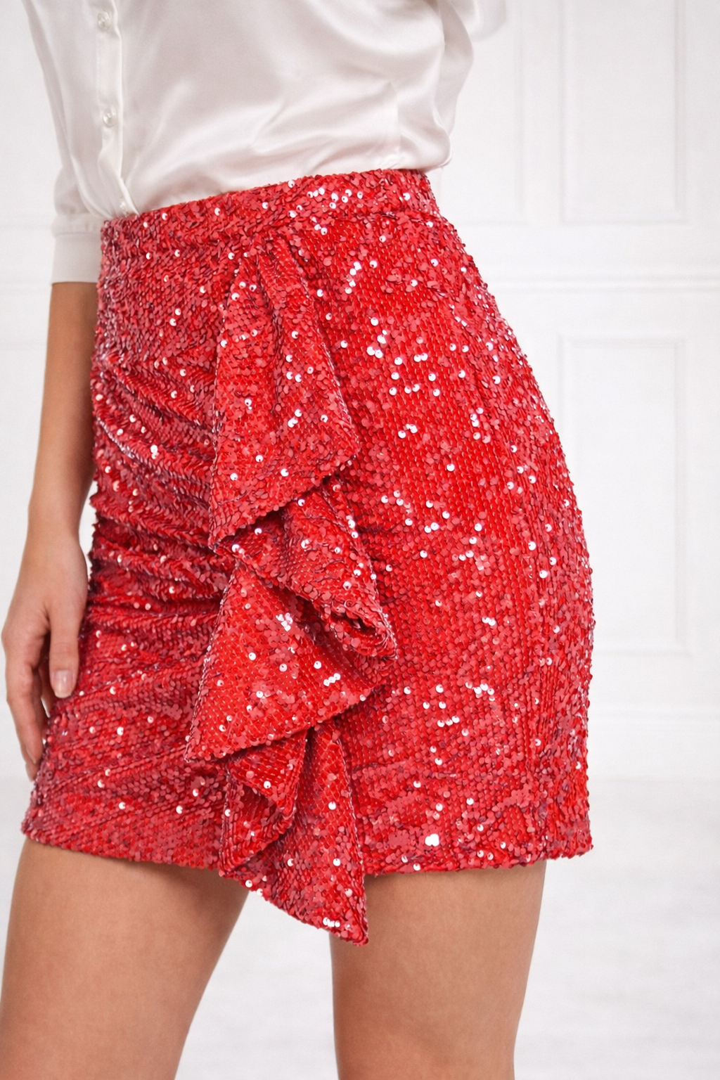 ANIYE BY – Minigonna rossa con paillettes e rouches